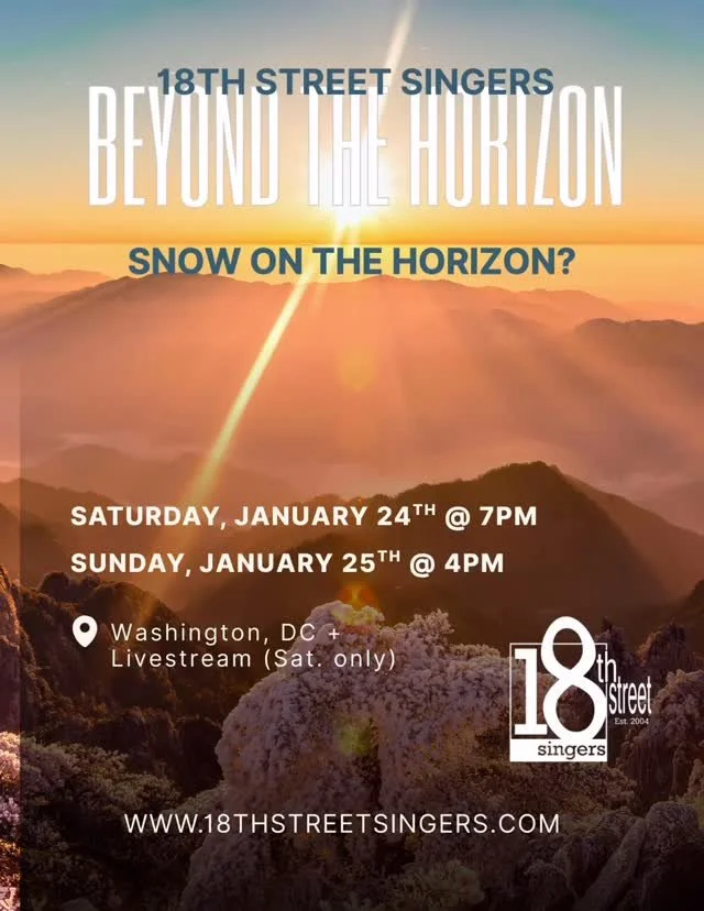 In life when night falls, a year ends, or you reach a final chapter, the horizon blurs. The familiar gives way to uncertainty, and we are left alone with questions—about ourselves, our world, and what comes next. The 18th Street Singers’ winter concert, Beyond the Horizon, invites us into this liminal space as a musical journey shaped by reflection and wonder asking not for answers, but for presence: what lies beyond our immediate sight, beyond this moment, even beyond our mortal knowing?